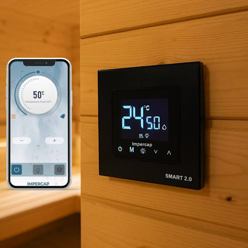 Os sistemas de sauna automáticos da Impercap oferecem controle completo via Wi-Fi, permitindo ajustar a temperatura, tempo e outros parâmetros diretamente pelo celular. Com timer programável e funções de automação, o usuário pode garantir um aquecimento eficiente e personalizado, sem complicações. Essa tecnologia une conforto e modernidade, facilitando a experiência do usuário e otimizando o uso da sauna em ambientes residenciais e comerciais.